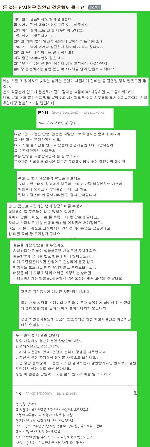 ->대한민국은 여자들이 살기 너무 힘듦. 이래서 결혼하기 싫음. 당장 이혼하세요. 등등