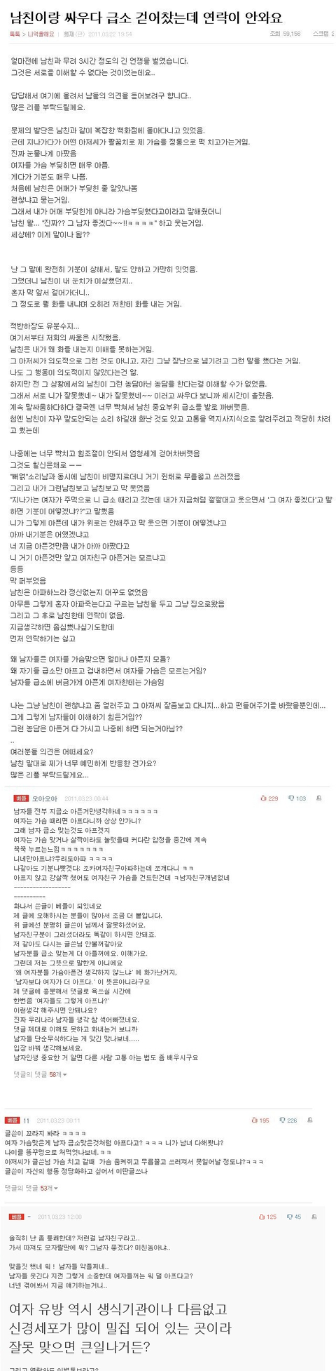 -> 남자친구 참 어이없네요. 사랑하면 그 정도는 맞춰줘야하는거 아닌가요? 나같으면 헤어진다.