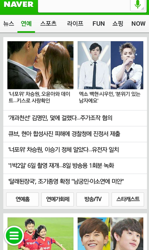 네이버 메인에 백현이랑 민석이가'ㅅ'