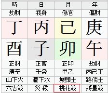 제가 빨간색으로 표시해놓은 桃化殺이라는 글자가 있는지 없는지 보시면 되겠습니다.