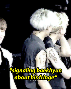 백현이 앞머리가 눈 가린게 신경이 쓰인 것 같다 ㅂ_ㅂ