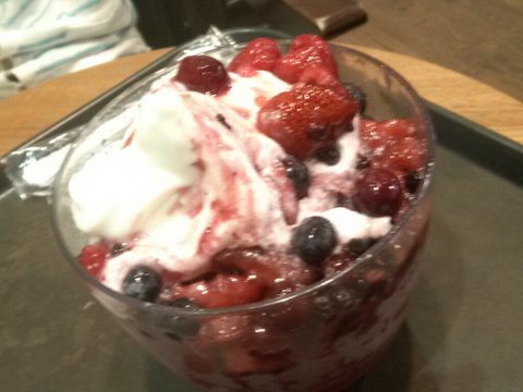 안녕하세요 부산 투썸플레이스에서 요거베리빙수를시키고 받앗더니 모양이 이렇더라구요 .. 수저 하사도 손안댔어요 원래 빙수시키면 이렇게나오나요ㅠ?
