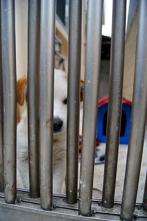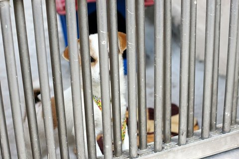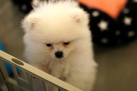 분양 기다리는 포메 강아지들 냄새를 킁킁 맡았어요