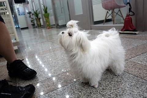 ㅋㅋㅋ 하얀 포메 강아지 운동중이더라구요.ㅎㅎ 복실복실