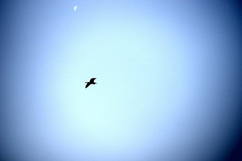 하늘을 보니. 왜가리 한마리가 날아가고 있었어요.