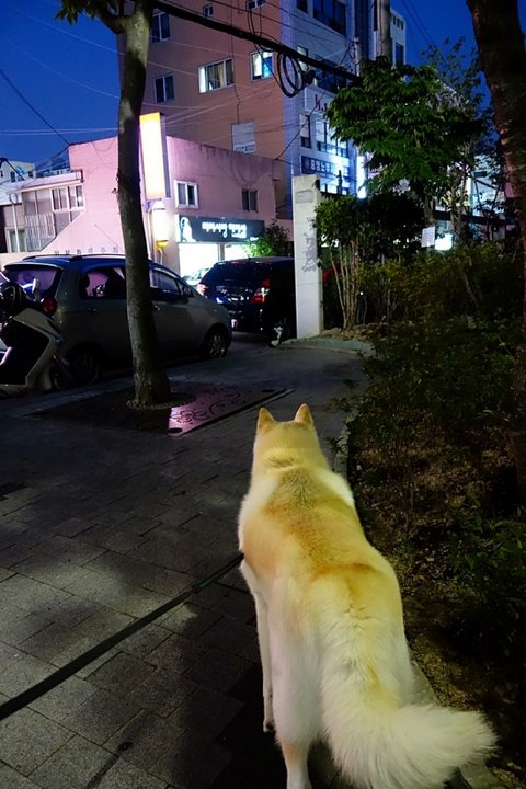 주인분이랑 동네 산책 하는 것 같더라구요.
