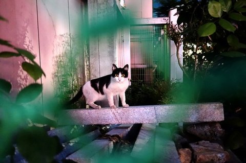 검은 고양이 친구가 숨어서 쳐다보고 있어요.