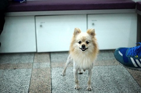 병원에 온 포메 친구랑 인사하고 있어요.