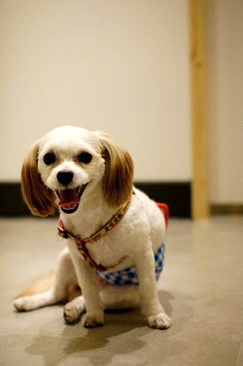 산책 간다고 기분 좋아서 귀가 뒤로 넘어갔어요.ㅎㅎ