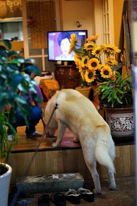 심바녀석 식당에 들려서 아주머니. 고기 주세요~ 하고 있어요.ㅎㅎㅎㅎ