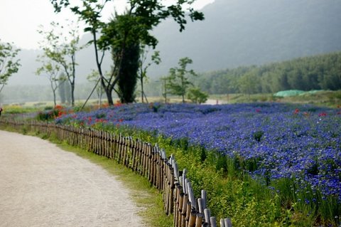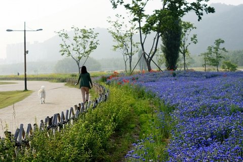 길 옆에 파란꽃들이 참 이쁘더라구요