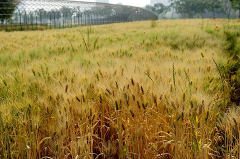 건너편 보리밭.. 보리가 누렇게 익었어요.