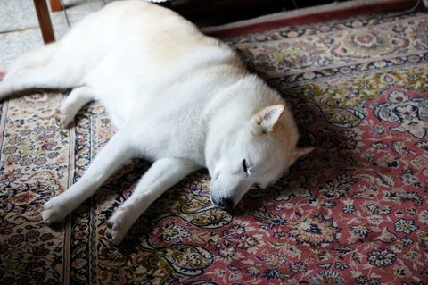 산책후. 노곤해진 몸.. 편안하게 자고 있어요.
