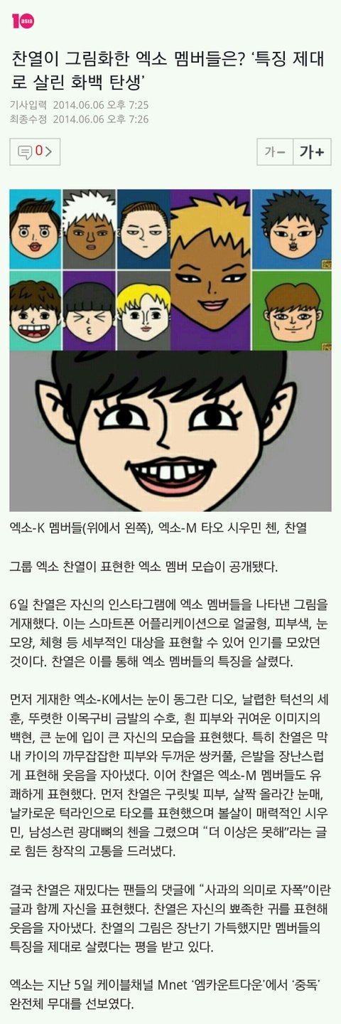 찬열이 인스타 기사떳다