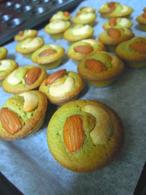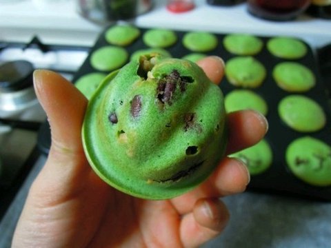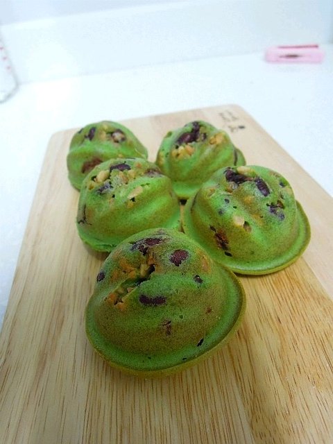 팥소에 견과류를 듬뿍 넣어 녹차반죽과 함께 구워낸