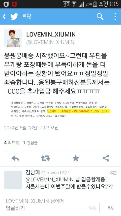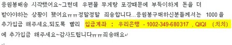 이번에 만두봉 산 웅녀들 추가입금해달래