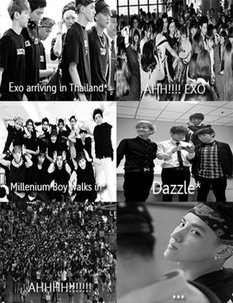 이 사진들은 엑소 멤버들의 사진 구도, 머리, 옷 스타일을 모방한 사진들 입니다. 그들은 자기들이 엑소인듯 엑소의 모든 것을 모
