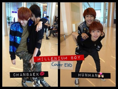 이들은 밀보에서 세훈과 루한의 역을 맡고 있는 사람들인데 훈한, 찬백 이라고 하면서 음지의 커플링을 대놓고 따라하고 있습니다. (루한을 맡은 사람은 실제로 게이입니다.)