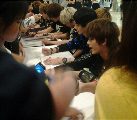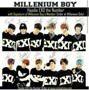 위의 사진들은 싸인이 들어간 엑소 티셔츠를 주문하라는 내용과 밀보의 팬싸인회 사진입니다.