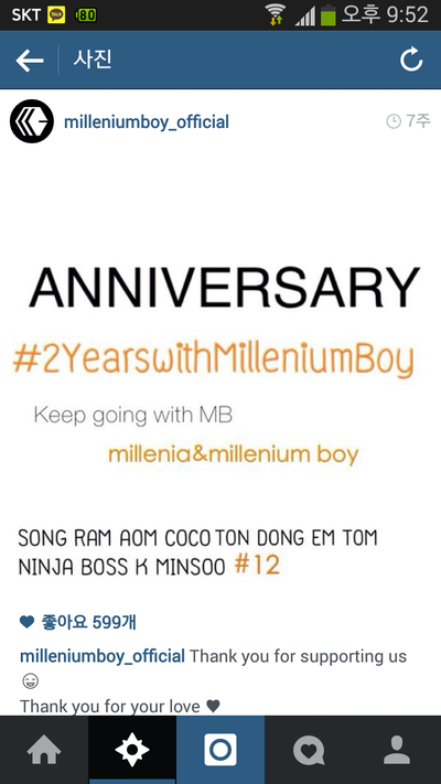 (밀보 2주년을 기념하여 인스타그램 공식 계정에 올라온 팬클럽 밀레니아에 대한 감사글입니다.)
