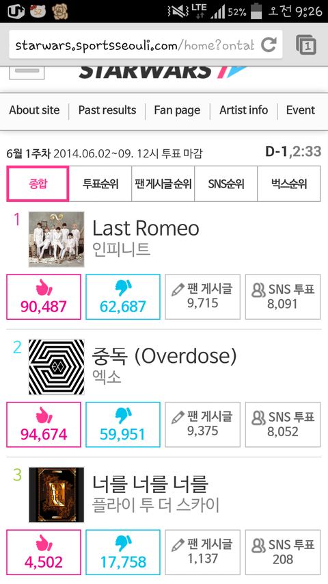 이거12시에마감인데2위임 2시간좀넘게남았는데 빨리올리자ㅜㅜㅜㅜㅜㅠㅠ팬게시글이랑sns투표트윗계정있는애들이빨리해주고 벅스스밍도돌리자