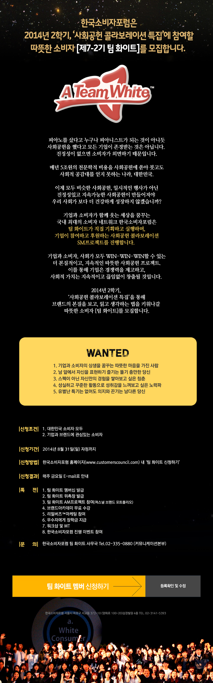 우리 사회의 따뜻한 변화를 이끌어 갈 [팀 화이트]를 모집합니다.