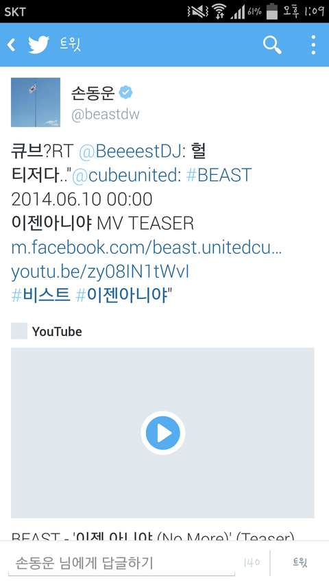 큐브에 대한 소속가수 반응