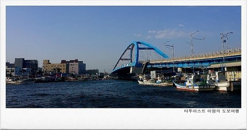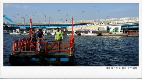 주인 아주머니와 막걸리를 한 잔씩 주고받으며 모듬 순대와 순대국 한 그릇을 금세 먹어 치웠다. 배가 든든해진 나는 갯배를 타고 중앙시장 방향으로 가기로 했다.