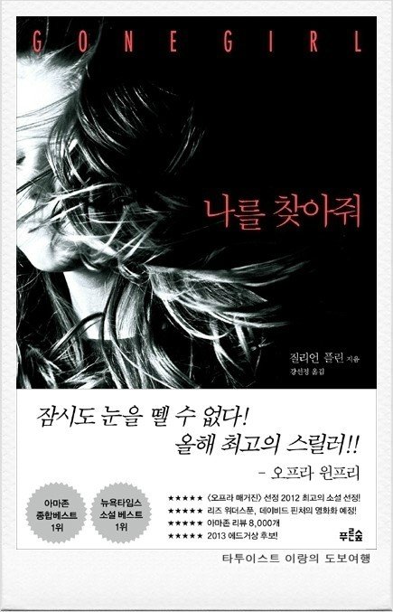 내가 선택한 책은 길리언 플린의 장편소설 "나를 찾아줘" 이다. 잠시도 눈을 뗄 수 없는 스토리! 올해 최고의 심리 스릴러!! 라고 오프라 윈프리가 극찬한 책이다. 나는 책을 선택할 때 오프라 윈프리가 언급한 책은 꼭 구입하는 경향이 있다. 바로 전에 읽었던 셰일 스트레이드의 "와일드" 또 한 오프라 윈프리가 극찬한 책이었다. 그리고 나의 선택은 결코 후회 없는 선택이었다.