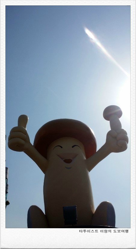 송이의 도시 양양 도착을 알리는 송이 모양의 조형물