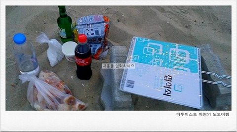저녁 늦게 하조대에 도착 후 해변에 텐트를 설치한 후 생닭 한 마리와 소주 한 병을 슈퍼에서 구입한 후 해변에 불을 피우고 혼자만의 특식을 마련했다.
