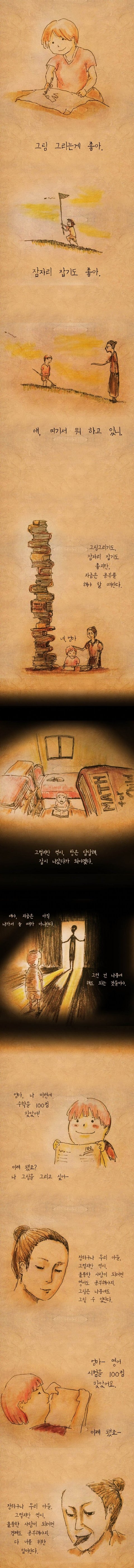 확실하진않은데 난 이렇게 들었는데. 어느 여고생이 있는데 어렸을때부터 부모님 기대치가 너무높은거임. 전교권에 드는 애였는데도불구하고 점수가떨어졌다고 엄마가 닦달하고, 올라도 그냥그래하고 그래서 모의고사때 올1등급찍고 유서에 이제됐지? 라고쓰고 자살한내용으로 알고있음