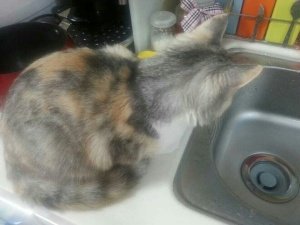 싱크대에 들어가면 꼬리고 발바닥이고 다 젖으니까 못들어가게 하는데