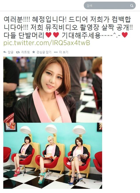 그 외에 다른 멤버들은 단발로 변신하는게 이번이 처음이여서 눈길을 끄네요ㅎㅎ