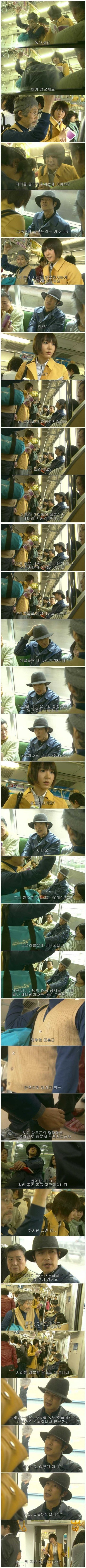 일본드라마 리갈하이예요 여자는 자기앞자리 비어서 할아버지에게 앉으라고 양보했는데 그사이에 저남자가홀랑앉아버림 그래서저여자가 남자한테 할아버지께양보하라고말한거임