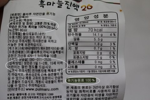 유기가공식품으로 인정받은 건강한 유기농흑마늘진액입니다.