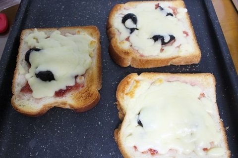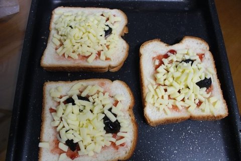 딸기잼과 , 통흑마늘 , 피자치즈로만 만든 간단토스트 !!