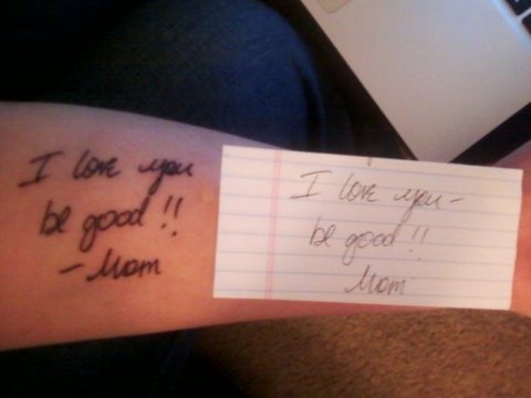 어머니가 돌아가시기 전날밤에 아들한테 남기셨던 쪽지아들이 그대로 타투로 새겼다고 하네요