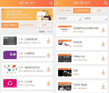 각종 할인,적립 카드들을 등록하여 사용할 수 있고,