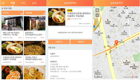 주변에 쿠폰을 이용할 수 있는 가게의 정보와