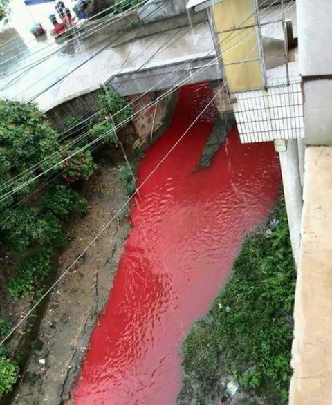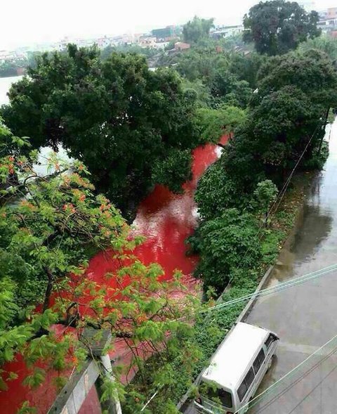 더욱 놀라운 것은 강의 일부는 새빨간 핏빛,