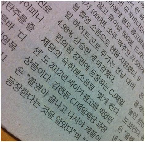 어제 신문에서 본 내용인데 ㅋㅋㅋ 싸이가 의리로 그동안 광고한 제품들을