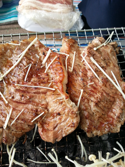 몇주전 주말 앞집언니 부부와 함께 진위천 가서 고기 궈 먹음