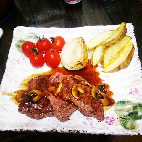 말그대로 스테이크. 엄마께서 장보시고 오시더니 고기를 던져주며 한마디 하심. "지지고 볶던 알아서 해"엄마께 해드리니 쩝쩝 맛있게 드셔주심!!