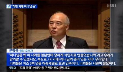 KBS 보도에 따르면, 문 후보자는 지난 2011년 자신이 장로로 있는 온누리교회에서 교회 신자들을 상대로 한 특강에서 ‘신판 친일파’로 불릴만한 발언을 한 것으로 확인됐다. 문 후보자는 이날 강연에서 일본의 조선 식민지배와 남북 분단이 하나님의 뜻이라는 취지로 발언한 것을 비롯해 1945년 8.15 광복은 독립운동의 결과가 아니라 하나님의 뜻이라거나 감리교단 소속 신자인 친일파 윤치호를 비호한 발언, 그리고 제주4.3사건을 공산주의자들의 반란이라고 강변했다. 이밖에도 우리의 원수와도 같은 일본이 우리의 이웃국가인 것을 두고 ‘지정학적 축복’이라거나 우리민족의 상징은 게으른 것이라는 등 극도의 민족 비하 발언을 쏟아내기도 했다. 이같은 내용은 그의 강연 동영상으로 확인된 것이니 그 자신도 부인할 수 없을 것이다.