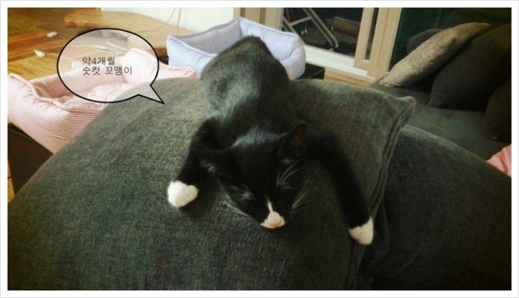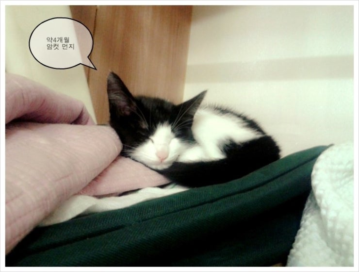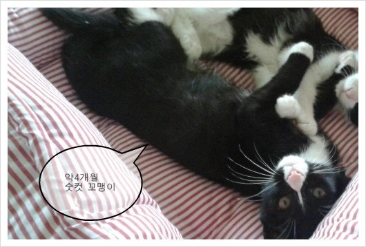(오타입니다 3개월입니다 ^^;;)개그묘기질이 다분한 꼬맹이과식을 전혀 하지 않는 날씬한 몸매의 소유자 ^^사료 가리지 않죠 ^^ 골골송 모터 장착했죠 ^^