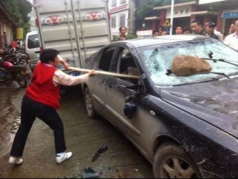 '개도둑'을 차 밖으로 끌어내면서 사정없이 구타했다.