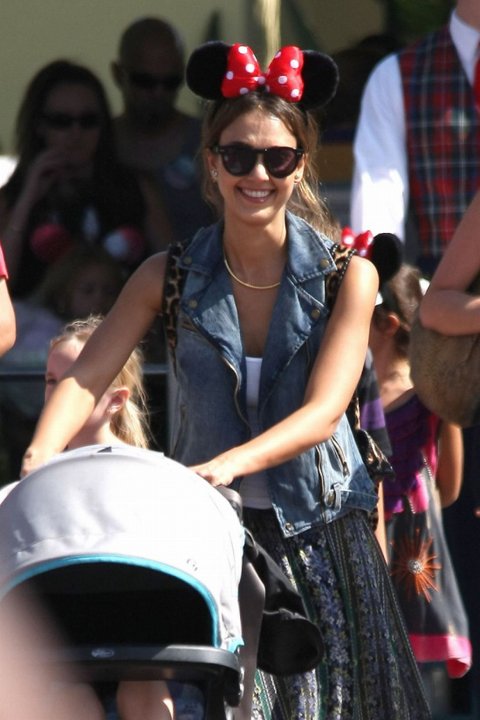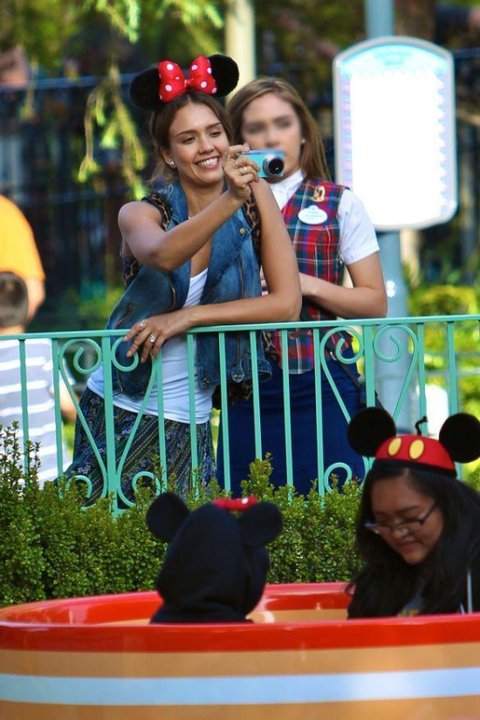 두딸들을 위해 미니마우스머리띠 하고 맞춰주는 제시카알바ㅋㅋ