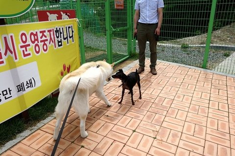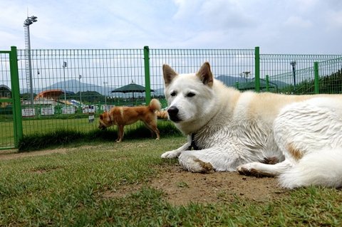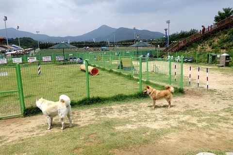 너무 일찍 와서 그런지 대형견 운동장은 아직 정리중이었어요.