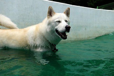 물에만 들어가만 기분 좋은 심바.